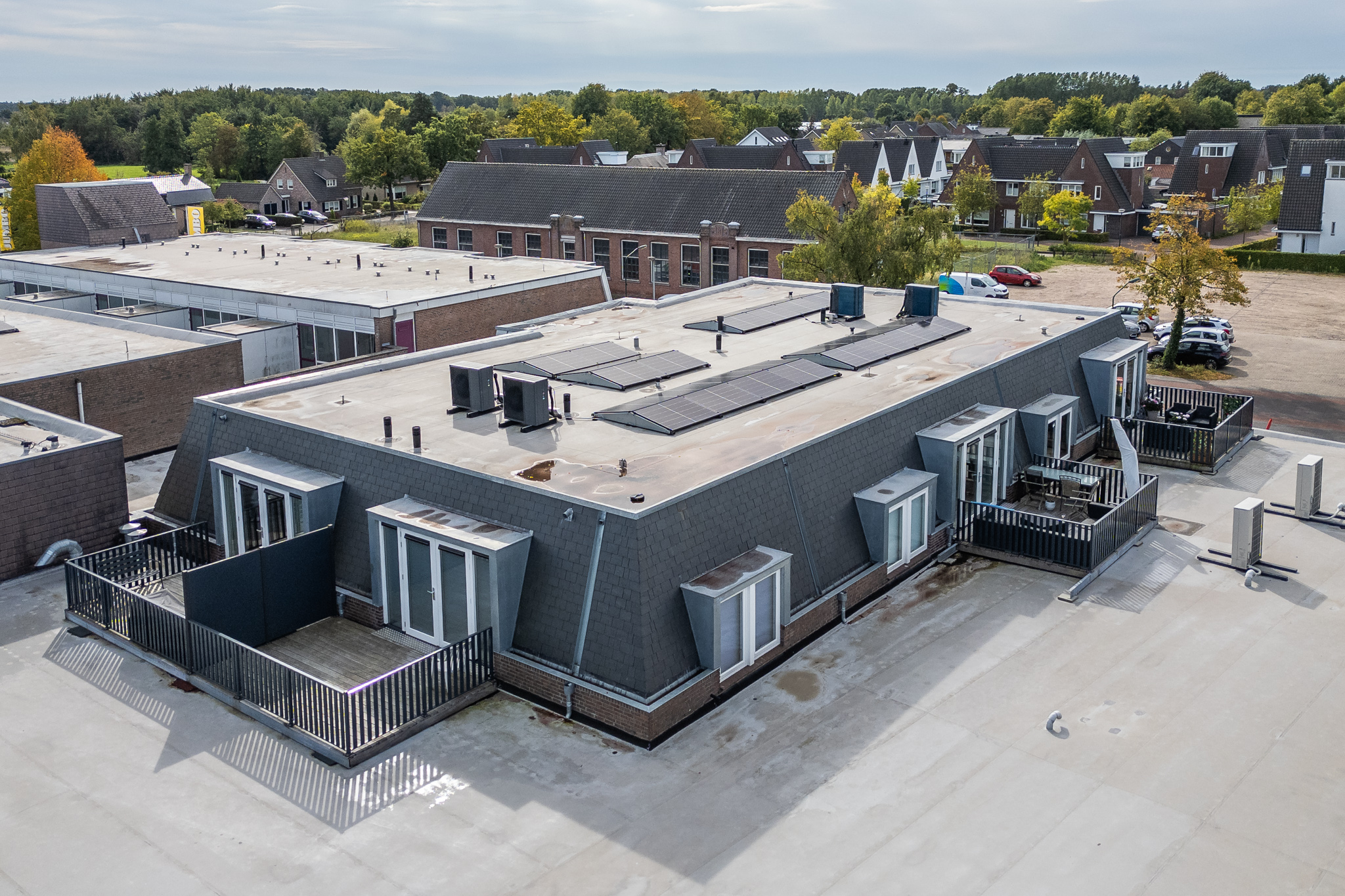Voormalige kantoorruimtes op de eerste verdieping zijn getransformeerd tot 4 huur-appartementen. De appartementen beschikken allemaal over een ruim terras en een privé-berging.